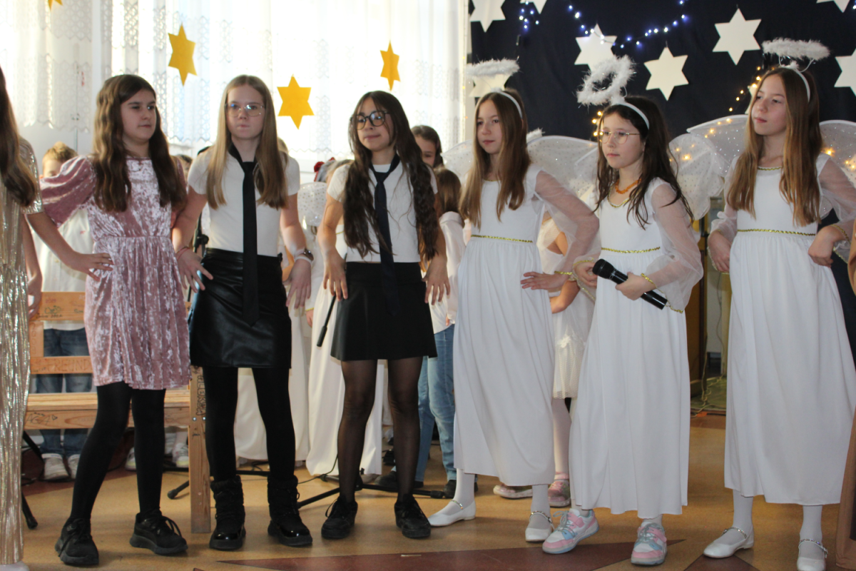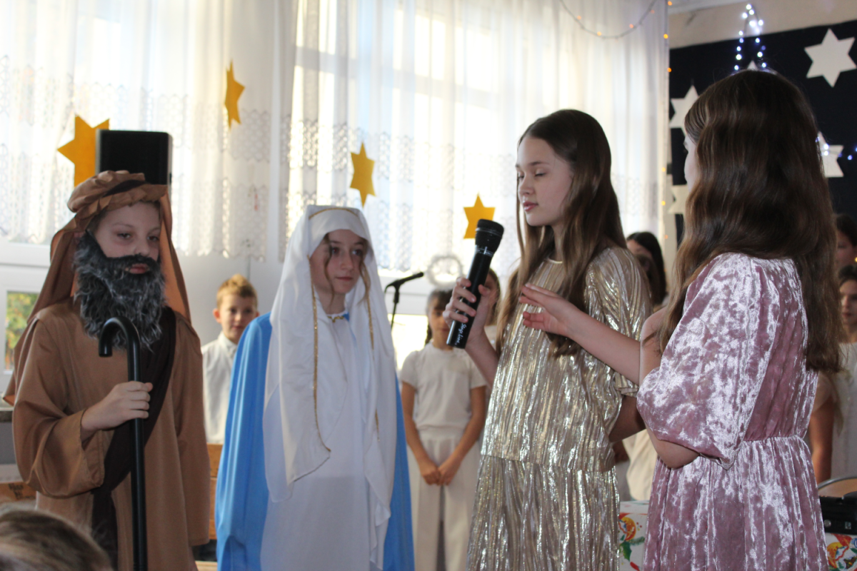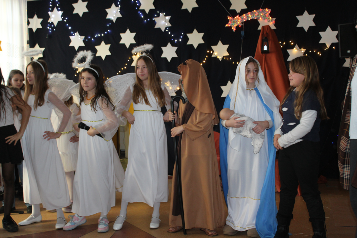 Jak co roku, zgodnie z piękną i pielęgnowaną od wielu lat tradycją, w naszej szkole odbyło się jasełkowe przedstawienie. To wyjątkowe wydarzenie na stałe wpisało się w kalendarz szkolnych uroczystości i za każdym razem gromadzi liczne grono zaproszonych gości oraz całą społeczność szkolną. Wśród zaproszonych gości znaleźli się: Wójt Gminy Olszanka– pan Tymoteusz Drebschok, Przewodniczący Rady Gminy – pan Sławomir Barwiński, sołtysi, m.in. pan Adam Kaźmierczak, a także Dyrektor Gminnego Ośrodka Kultury i Sportu (GOKiS) w Olszance – pani Maria Pikul. Swoją obecnością zaszczycili nas mieszkańcy gminy. Jasełka były nie tylko ważnym wydarzeniem artystycznym i duchowym, ale także doskonałą okazją do integracji szkoły ze środowiskiem lokalnym oraz umacniania więzi między uczniami, nauczycielami i zaproszonymi gośćmi.