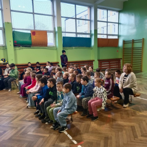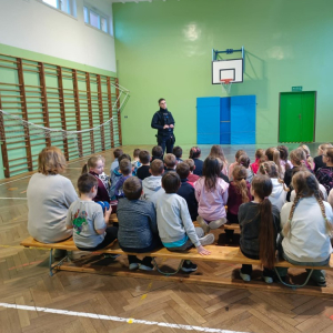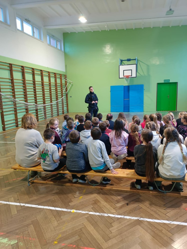 W naszej szkole odbyło się spotkanie uczniów najmłodszych klas z panem dzielnicowym Grzegorzem Łaciną z Komendy Policji w Lewinie Brzeskim, który przeprowadził pogadankę na temat bezpieczeństwa podczas ferii zimowych. Celem spotkania było uświadomienie dzieciom, jak spędzić ferie wesoło, zdrowo i przede wszystkim bezpiecznie. Pan policjant zwrócił szczególną uwagę na to, aby dzieci nie przekazywały osobom obcym informacji dotyczących wyjazdów – dokąd jadą, kiedy i na jak długo – ponieważ mogą one zostać wykorzystane przez osoby o złych zamiarach. Uczulał również, aby nie mówić, że jest się samemu w domu, zwłaszcza gdy rodzice długo pracują lub późno wracają. Omówione zostały także zasady bezpieczeństwa w domu, szczególnie w sytuacjach, gdy dziecko zostaje samo lub pod opieką rodzeństwa. Policjant przypomniał, aby nie otwierać drzwi nieznajomym, nie informować obcych o nieobecności rodziców oraz nie podejmować prób samodzielnego gotowania. Podkreślono, że nie wolno eksperymentować w kuchni, zwłaszcza z gorącym olejem, który może być przyczyną poważnych wypadków. Dużo uwagi poświęcono również zabawom zimowym. Pan Grzegorz przestrzegał przed wchodzeniem na lód na dzikich stawach, jeziorach i innych zbiornikach wodnych, który może sprawiać wrażenie bezpiecznego, a w rzeczywistości być kruchy. Przypomniał, aby nie przebywać samotnie w lasach, zaroślach ani poza domem po zmroku oraz aby zawsze zachować czujność i rozsądek. Zwrócono także uwagę na bezpieczne korzystanie z sanek – wyłącznie w miejscach do tego przeznaczonych,