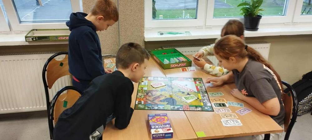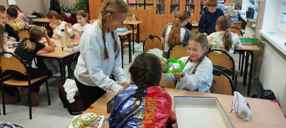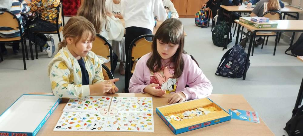 W naszej szkole obchodziliśmy wyjątkowe wydarzenie – Dzień Gier Planszowych, który trwał aż dwa dni – 9 i 10 października. W tym czasie sale lekcyjne i biblioteka szkolna zamieniły się w przestrzenie pełne uśmiechu, współpracy i zdrowej rywalizacji. Dzieci przyniosły ze sobą najróżniejsze gry planszowe – od klasycznych po nowoczesne – i z radością dzieliły się nimi z koleżankami i kolegami. Na stołach pojawiły się m.in.: Grzybobranie, Cucaracha, domino, bierki, szachy, karty memory, Zgadnij kto to?, szachy, Dobble, Monopoly, układanki i gry z magnesami. Każdy mógł znaleźć coś dla siebie – zarówno miłośnicy strategii, jak i ci, którzy preferują szybką zabawę i refleks. Dzieci chętnie próbowały nowych gier, wymieniały się nimi, uczyły zasad i wspólnie tworzyły przyjazną atmosferę.