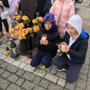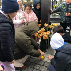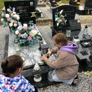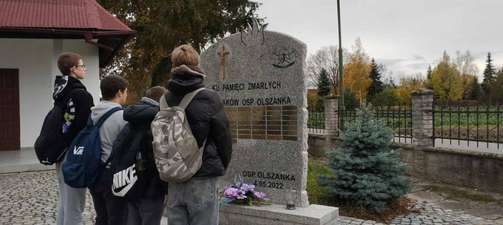 Szczególnym momentem było odwiedzenie pamiątkowej kamiennej tablicy z nazwiskami zmarłych strażaków – druhów z Ochotniczej Straży Pożarnej w Olszance. Przy niej uczniowie i nauczyciele oddali hołd tym, którzy przez lata służyli innym, zapalając znicze i trwając w ciszy. Podczas spaceru spotkaliśmy również mieszkańców Olszanki i Pogorzeli, którzy porządkowali groby swoich bliskich. Wspólne rozmowy, uśmiechy i serdeczne gesty przypominały, że pamięć łączy ludzi – niezależnie od wieku. Na zakończenie wszyscy zebrali się przy głównym krzyżu, by zapalić znicze i wspólnie pomodlić się za dusze zmarłych. Był to piękny, wartościowy dzień.
