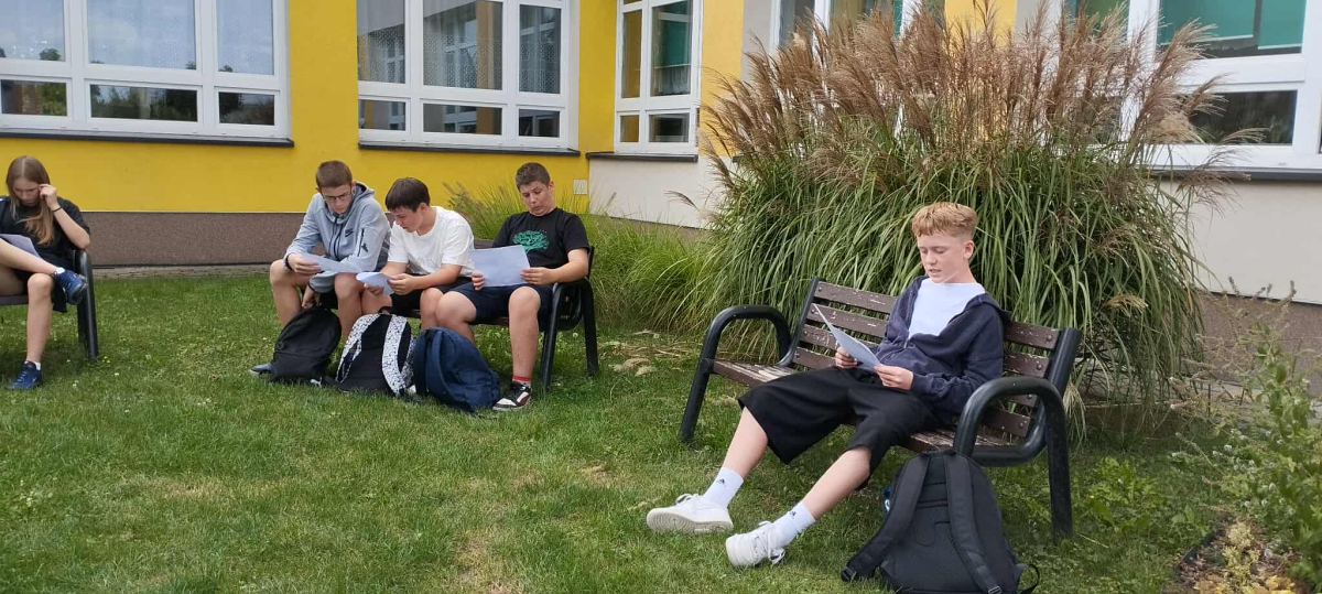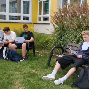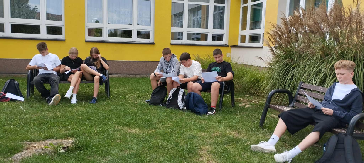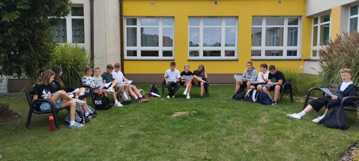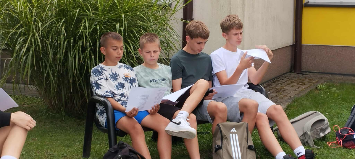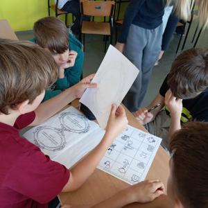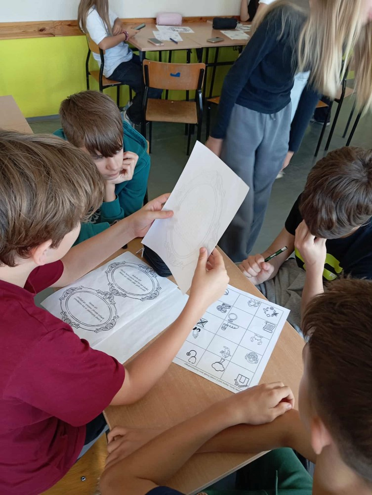 Starsze klasy zmierzyły się z fraszkami w bardziej wymagający sposób. Ich zadaniem było rozpoznanie tytułów na podstawie fragmentów tekstu, rozwiązanie literackiego quizu i odnalezienie ukrytego kodu QR, który – po poprawnym zeskanowaniu – prowadził do fraszki „Raki”. Uczniowie pracowali w grupach, ćwiczyli uważne czytanie i logiczne myślenie, a przy okazji świetnie się bawili.