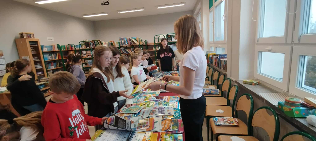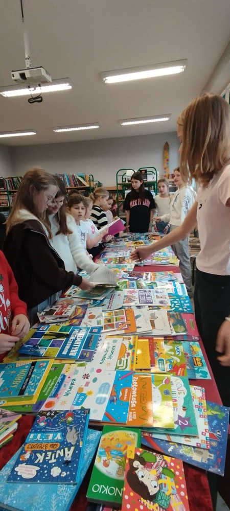 Z okazji zbliżających się Świąt Bożego Narodzenia biblioteka szkolna zorganizowała Kiermasz Taniej Książki. Dzięki współpracy z zaprzyjaźnioną Hurtownią Taniej Książki Tuliszków oraz Wydawnictwem Drugi Tom w naszej szkole pojawił się bogaty wybór książek w wyjątkowo atrakcyjnych cenach. Kiermasz cieszy się dużą popularnością – w czasie każdej przerwy uczniowie mogą odwiedzać bibliotekę, przeglądać ofertę i wybrać coś dla siebie lub bliskich. Hasło tegorocznego wydarzenia brzmi: „Książka – najlepszym prezentem pod choinkę”. Wśród propozycji znajdują się: kolorowanki, malowanki i wyklejanki, baśnie i opowiadania dla najmłodszych, książeczki edukacyjne, literatura młodzieżowa, ciekawostki popularnonaukowe, książki o zwierzętach, powieści dla starszych czytelników.