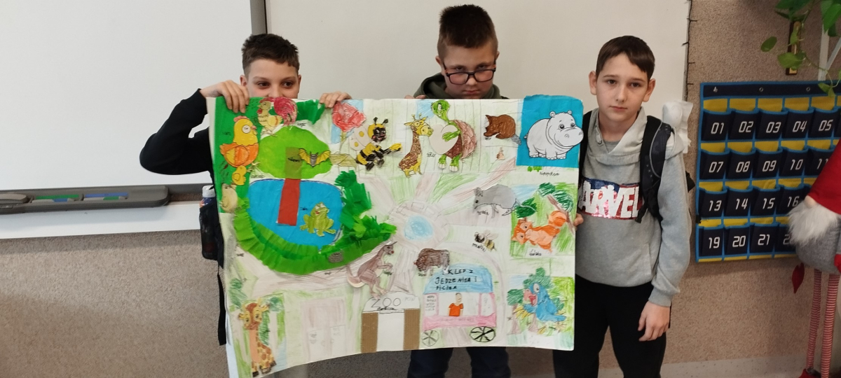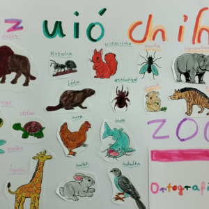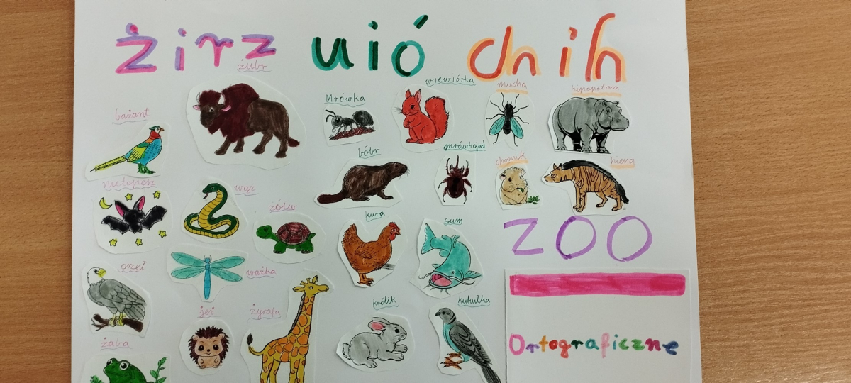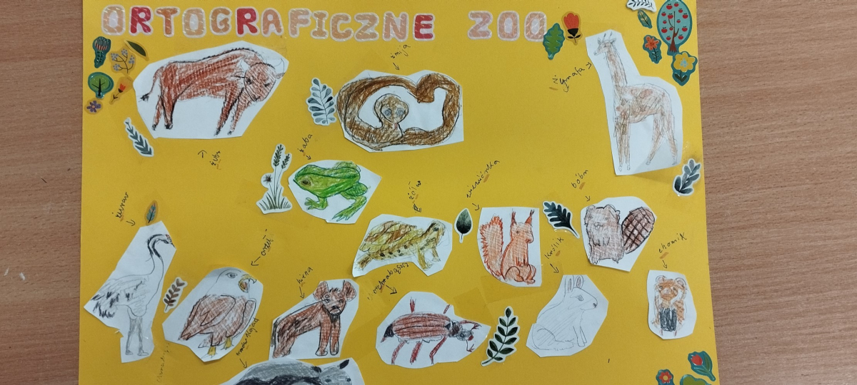 W ramach obchodów powstały również kolorowe plakaty pod hasłem „Ortograficzne ZOO”. Uczniowie umieszczali na nich nazwy zwierząt zawierające ortograficzne „pułapki”, dzięki czemu mogli utrwalić trudne zasady pisowni w kreatywny i atrakcyjny sposób.