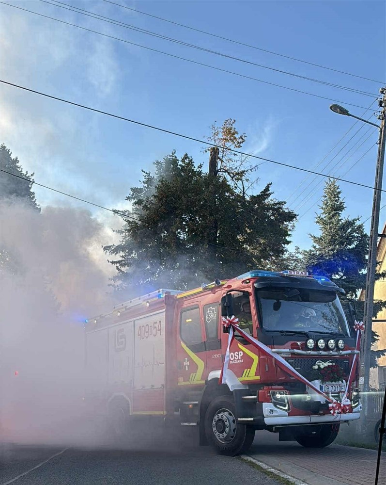 Uroczystego przekazania nowoczesnego, w pełni wyposażonego wozu strażackiego dokonał Wójt Gminy Olszanka- pan Tymoteusz Drebschok. Pojazd ten jest bardzo ważny, stanowi ogromne wzmocnienie potencjału ratowniczego jednostki – znacząco poprawi bezpieczeństwo mieszkańców, skróci czas reakcji oraz umożliwi sprawniejsze prowadzenie akcji ratowniczo-gaśniczych w trudnych warunkach. Zakup wozu został współfinansowany przez Unię Europejską ze środków Europejskiego Funduszu Rozwoju Regionalnego w ramach programu Fundusze Europejskie dla Opolskiego 2021–2027 oraz z Budżetu Państwa.