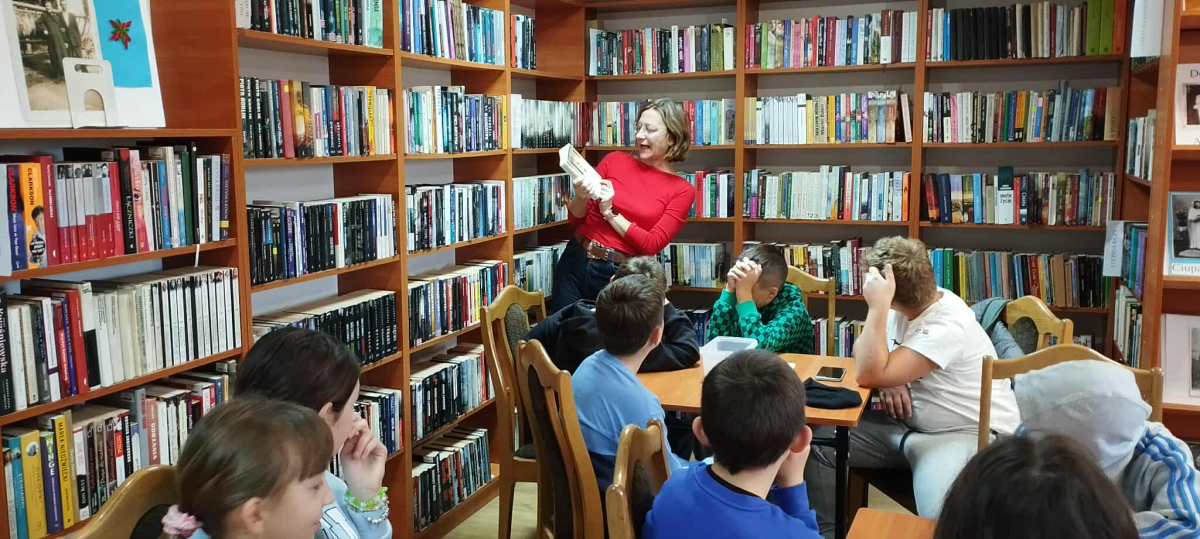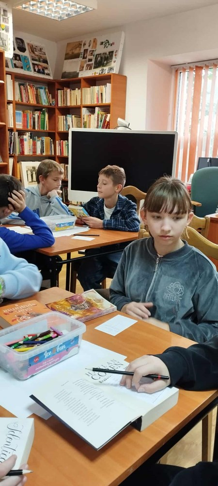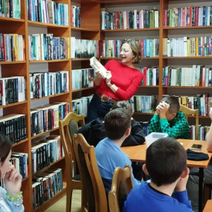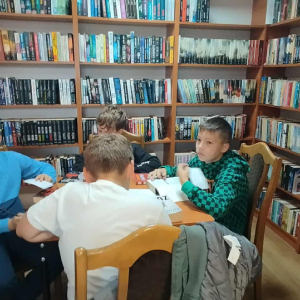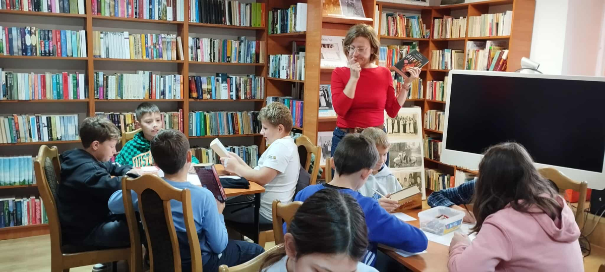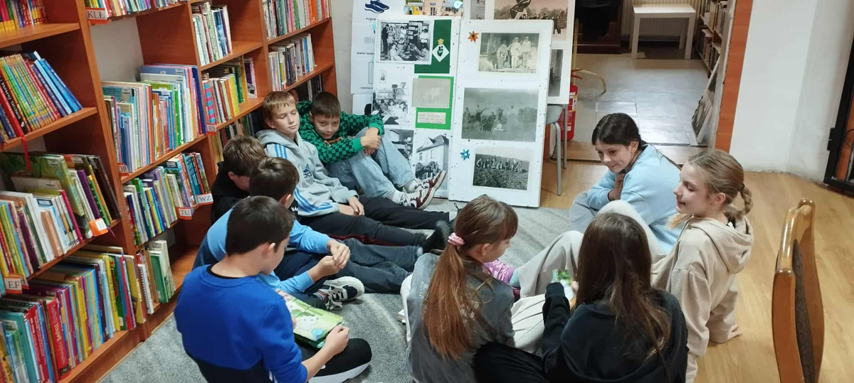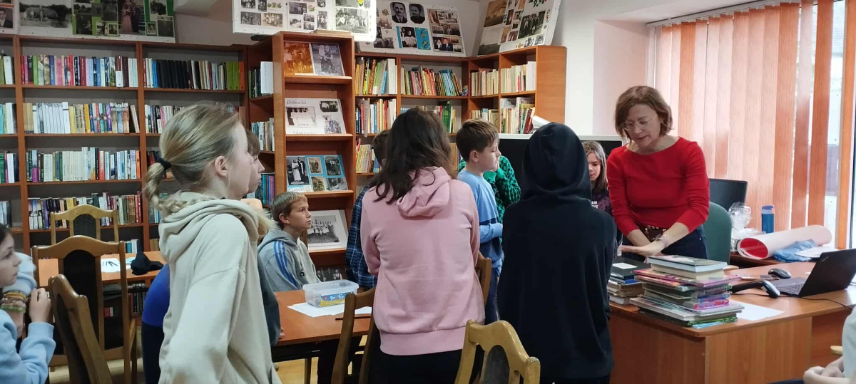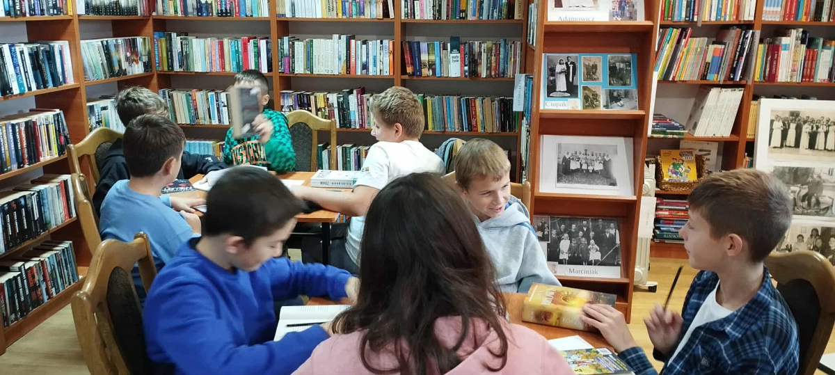 W czwartek, 16 października 2025 roku, uczniowie klasy piątej wraz z nauczycielem języka polskiego- p. Joanną Sowierszenko uczestniczyli w zaplanowanej wizycie w Gminnej Bibliotece Publicznej w Pogorzeli. Spotkanie miało na celu udział w wydarzeniu autorskim z panem Cezarym Harasimowiczem – znanym pisarzem książek dla dzieci. Niestety, z przyczyn niezależnych od organizatorów, spotkanie zostało odwołane w ostatnim momencie. Pomimo tej zmiany, dzięki otwartości i zaangażowaniu pani Marty Bruś – bibliotekarki GBP – uczniowie uczestniczyli w wartościowych i inspirujących zajęciach bibliotecznych.