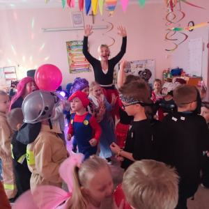 Bal karnawałowy to długo wyczekiwany czas w przedszkolu. Wszystkie dzieci z niecierpliwością oczekują momentu, w którym będą mogły przebrać się za swoje ulubione postaci z bajek. 21.01.2026r. poczuliśmy w naszym przedszkolu balową atmosferę karnawału. Ciężko było rozpoznać naszych przedszkolaków. Każdy miał na sobie piękne, kolorowe stroje ukazujące bohaterów znanych i lubianych bajek. W tym dniu dzieci brały udział w zabawach tanecznych, licznych konkurencjach, sesji zdjęciowej. Nie zabrakło rownież słodkiego poczęstunku. Dzień ten dostarczył naszym przedszkolakom mnóstwo radości i zabawy.