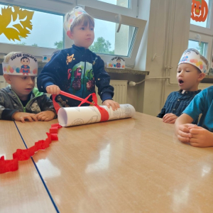 Dziewczynki wręczyły chłopcom prezenty, odbył się słodki poczęstunek.