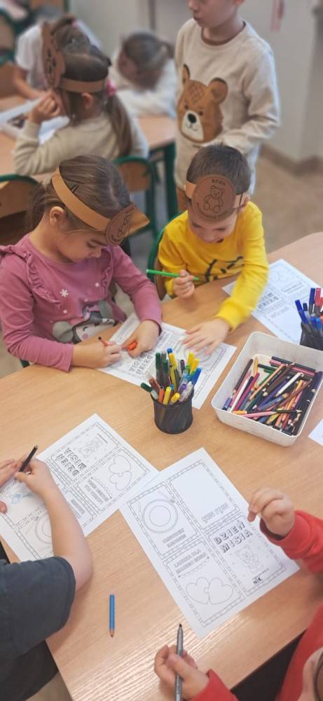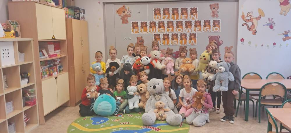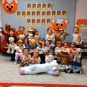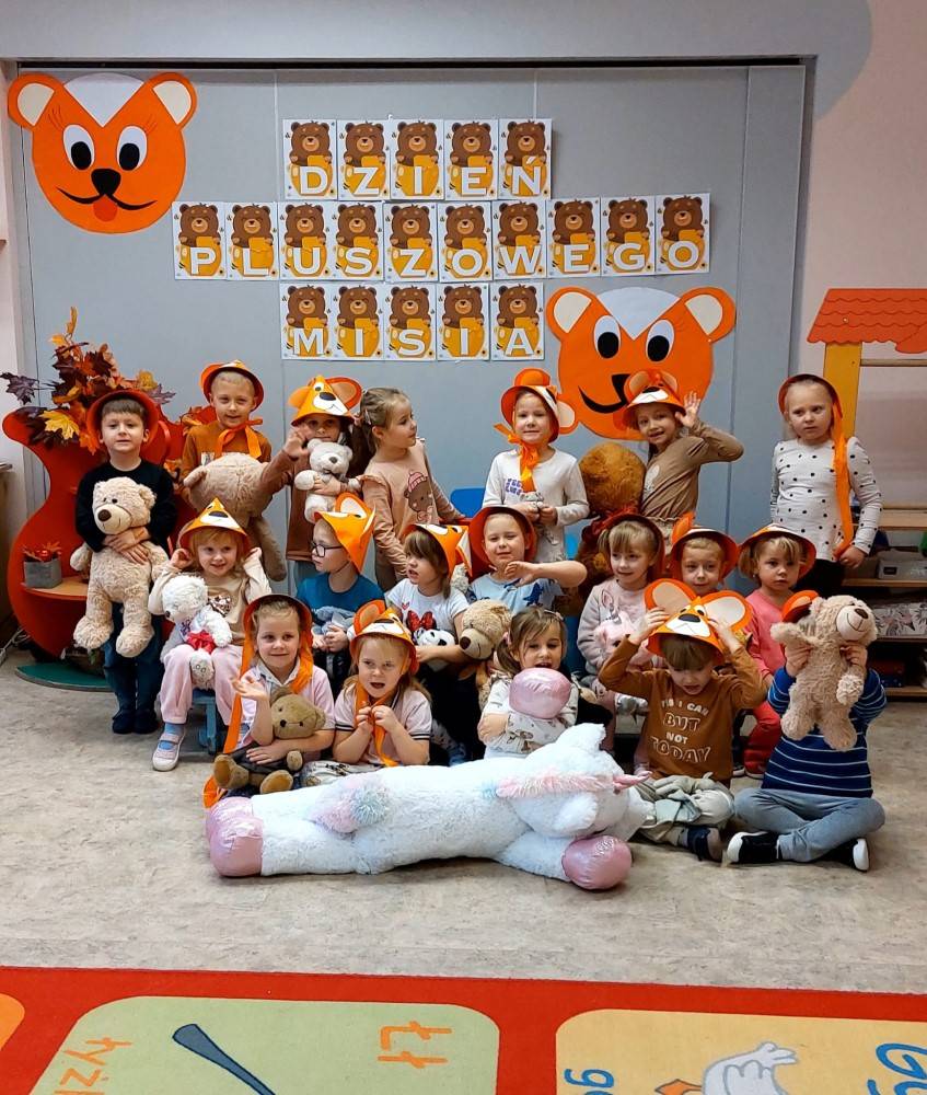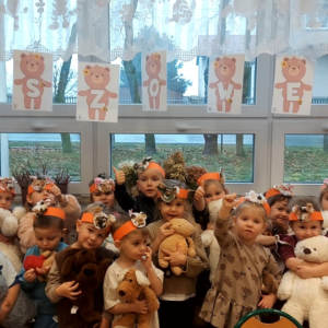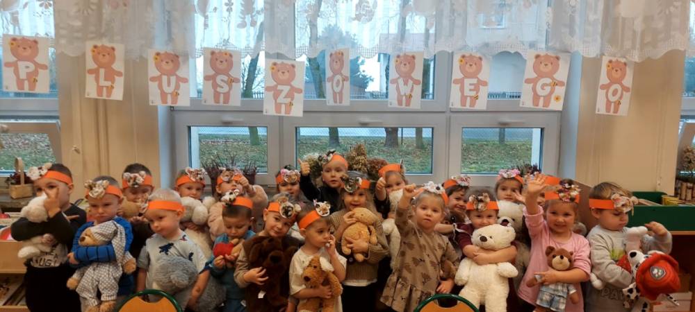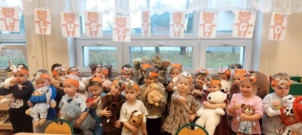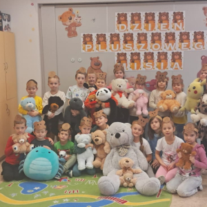 Dnia 25.11.2025 r. dzieci z naszego przedszkola obchodziły Dzień Pluszowego Misia. Każde dziecko przyszło do przedszkola ze swoim ulubieńcem, pluszowym misiem. W ten wesoły dzień czekało na dzieci wiele atrakcji. Przedszkolaki bawiły się ze swoimi misiami do znanych przebojów muzycznych, rozpoznawały na ilustracjach misie z różnych bajek, wykonały różnorodne prace plastyczne. Na podstawie filmu edukacyjnego poznały historię ukochanego misia.