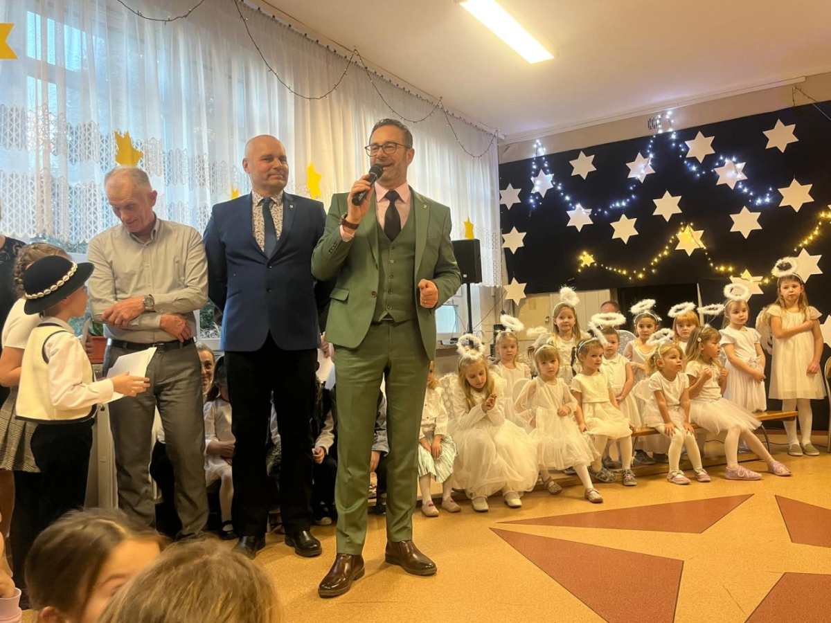 Po uroczystości pan wójt  Tymoteusz Drebschok oraz  pani dyrektor Bożena Lorent przesłali życzenia bożonarodzeniowe rodzinom i dzieciom. Przepiękna scenografia nadała temu wyjątkowemu spotkaniu uroczysty i nastrojowy klimat. Dziecięca interpretacja narodzin Jezusa Chrystusa, kolędy,  dekoracje oraz wzajemne życzenia, które zakończyły spotkanie, pozwoliły wszystkim poczuć atmosferę zbliżających się świąt, pełną ciepła, radości i bliskości.