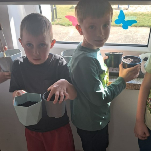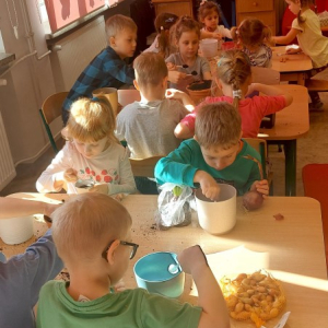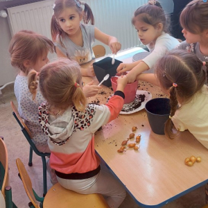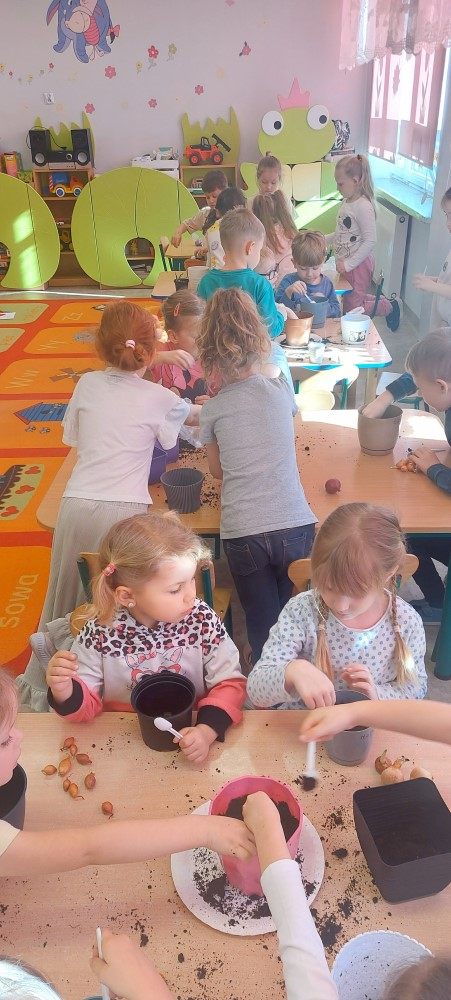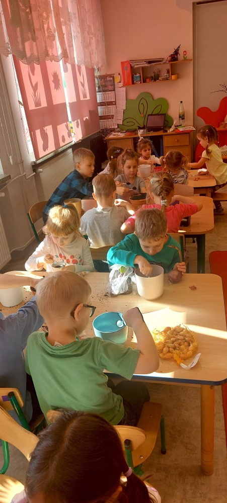 Dzieci z grupy II i III postanowiły zaprosić wiosnę do swojej sali, zakładając zielony ogródek. Przed przystąpieniem do pracy przypomnieliśmy warunki potrzebne roślinom do wzrostu. Następnie w małych grupkach dzieci wysiewały rzeżuchę, szczypiorek, pietruszkę oraz fasolę.