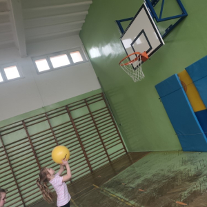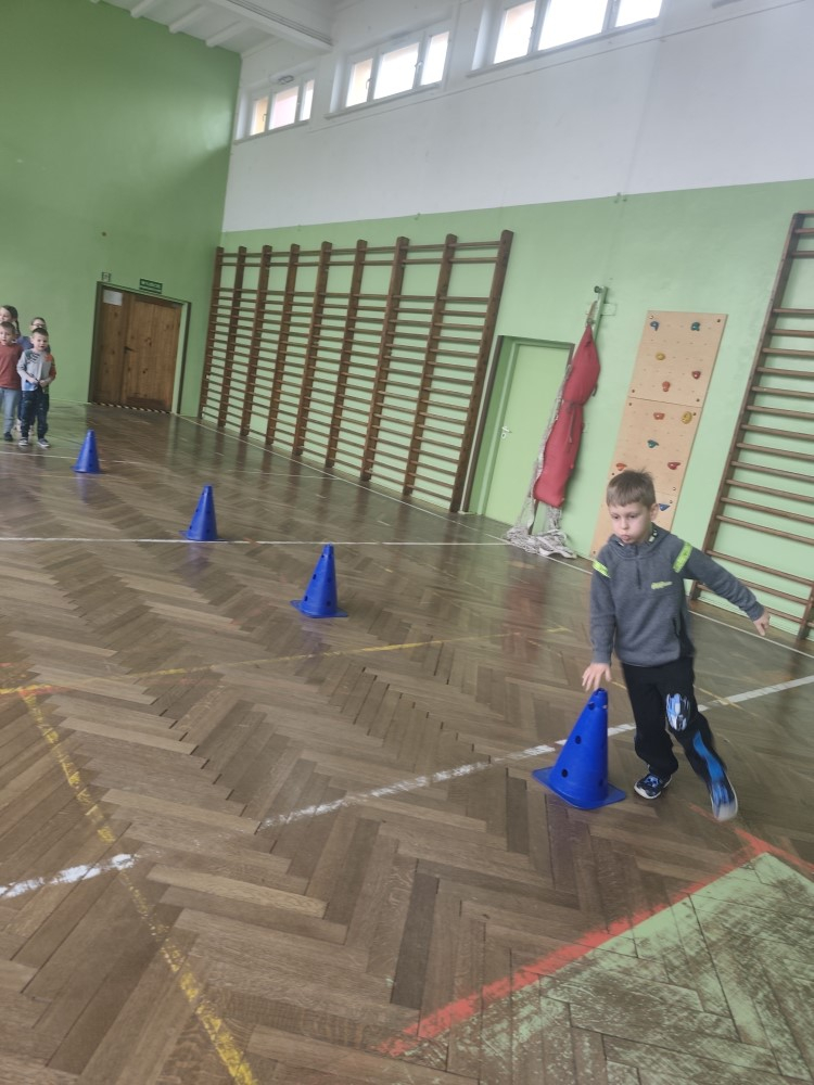 Podczas ferii zimowych dzieci przedszkolne chętnie uczestniczyły w zajęciach na sali gimnastycznej. Zajęcia były pełne ruchu i radości – dzieci brały udział w zabawach sportowych, ćwiczeniach ogólnorozwojowych oraz prostych grach zespołowych. Dzięki temu mogły spożytkować energię, rozwijać sprawność fizyczną i uczyć się współpracy z rówieśnikami. Aktywności odbywały się w bezpiecznej i przyjaznej atmosferze, sprzyjającej dobrej zabawie.